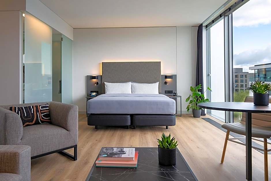 Contemporary studio with a flat-screen TV. The private bathroom offers a rain shower and a hairdryer.